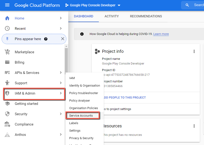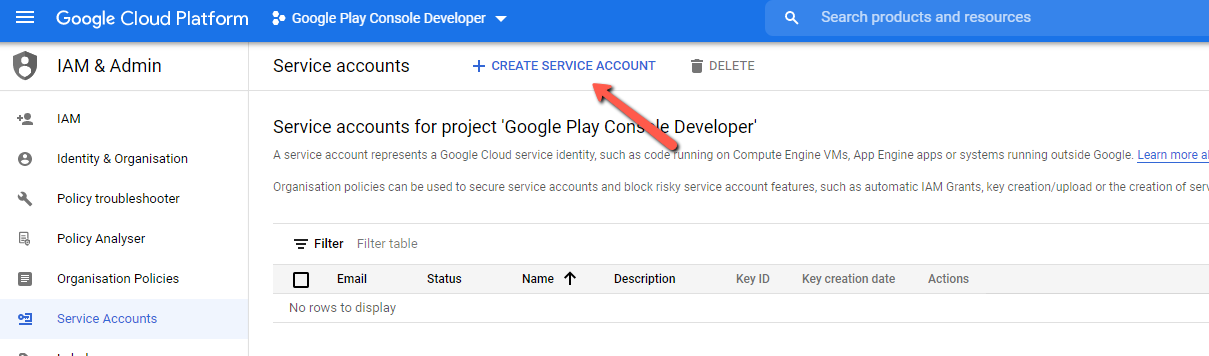8. 다음으로 서비스 계정을 생성해야 합니다. IAM & Admin -> 서비스 계정(Service Accounts)으로 이동하세요.