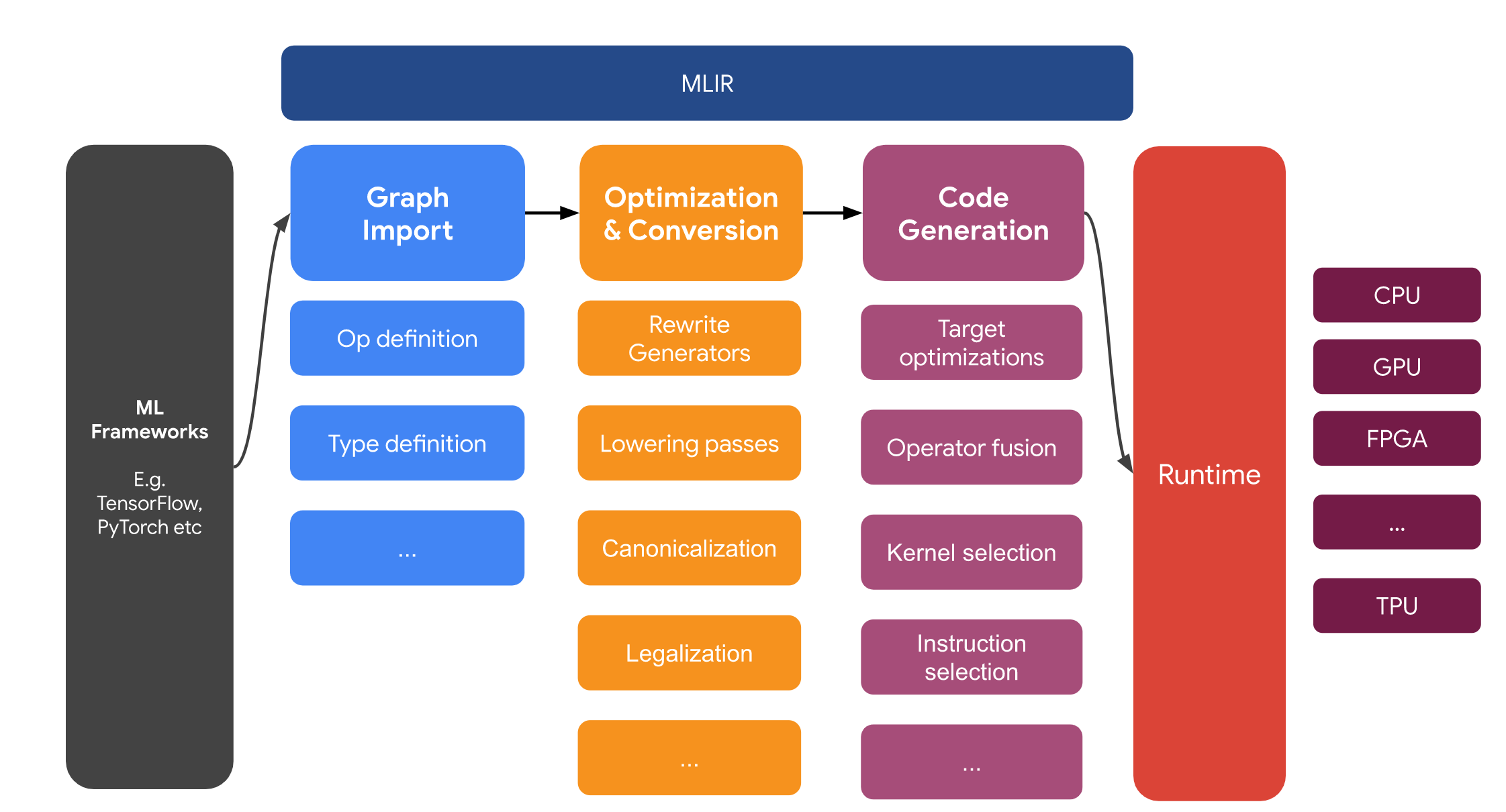 Mojo의 핵심 설계 철학은 다양한 AI 하드웨어 아키텍처에서의 원활한 확장성을 가능하게 하는 Multi-Level Intermediate Representation(MLIR)의 활용에 있다고 합니다.