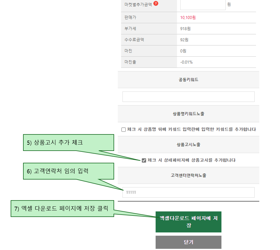 (엑셀파일 1개당 최대 500개의 상품만 들어가므로 여러페이지에 걸쳐서 엑셀파일을 다운로드 해야합니다.)