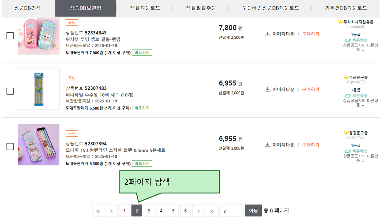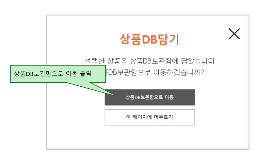 상품 DB담기 확인창이 나오면 상품DB보관함으로 이동합니다.