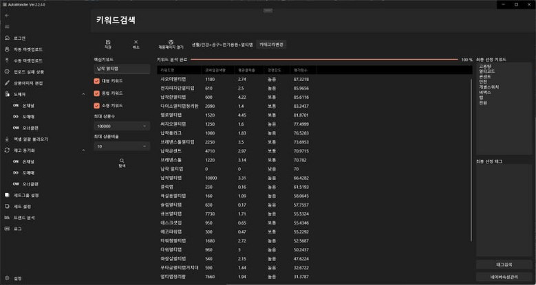 - 상품명 직접 설정 및 키워드 경쟁률 분석
