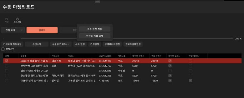 (4) 이미 업로드된 상품은 자동으로 스킵 / 선택항목 수정 설정 가능