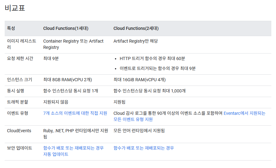 하지만 구글에서는 가능하다면 새로운 함수에 Cloud Functions(2세대)를 선택하는 것이 좋다고 말하네요.