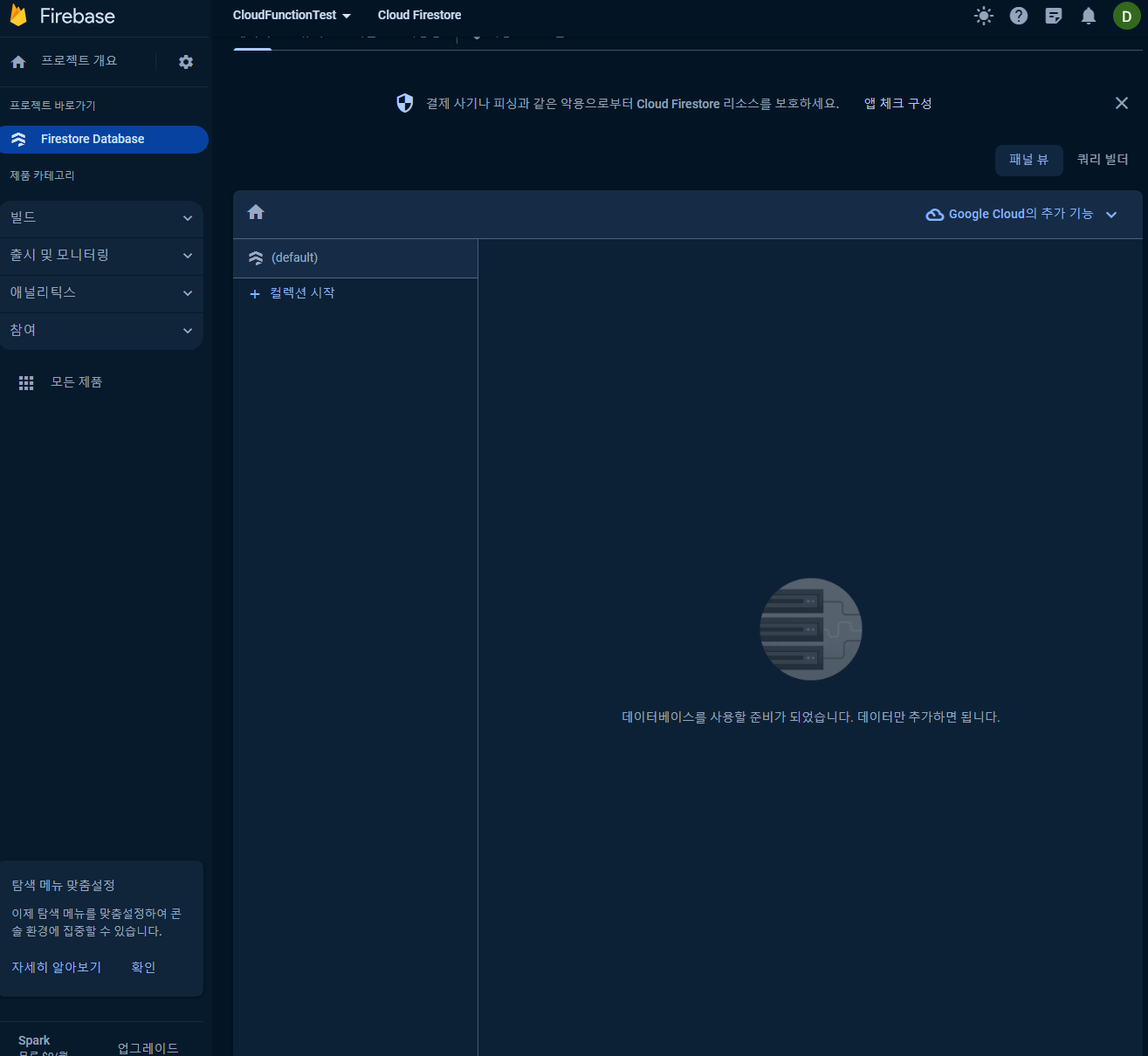 자, Cloud function을 테스트할 준비작업은 끝났습니다!