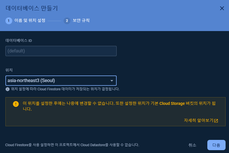 3) Firestore Database 생성